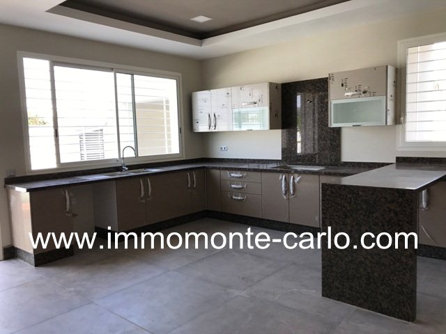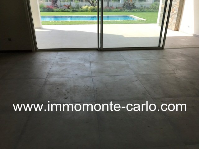 Vente à Rabat villa neuve haut standing moderne ensoleillée avec piscine chauffage central et des climatisation centralisée un jardin bien entretenue et fleuri, un garage automatique et puits, composée de double salons européens avec cheminée, une salle à manger et terrasse donnant sur le jardin, salle d’eau des invités avec lave main et une cuisine équipée, suite parentale avec salle de bain et dressing, 3chambres avec salles de bain, chambre de personnel avec douche, débarras,…Pour plus d’informations ou visite n’hésitez pas de contacter notre agence immobilière Immo Monte-Carlo au N° de tél: +212661464037/ +212661212547ou Tél/Fax: +212537755043 ou par E-mail : immomontecarlo@gmail.com ou visitez notre site www.immomonte-carlo.com ou rendez-vous à rue Dayet Aoua, Imm 2, Apt 3, Agdal RABAT MAROC.