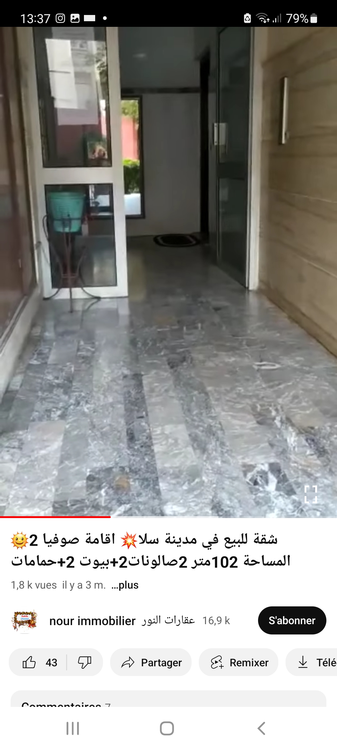 apparemment à vendre bien situé à salé au centre ville (lakouass) dans une résidence fermée de surface 65m2 au 3ème étage ensoleillé, située à 5 min de la gare de train 2 min de carrefour. se composé de 3 chambres cuisine avec balcon salle de bain et un garage sous sol