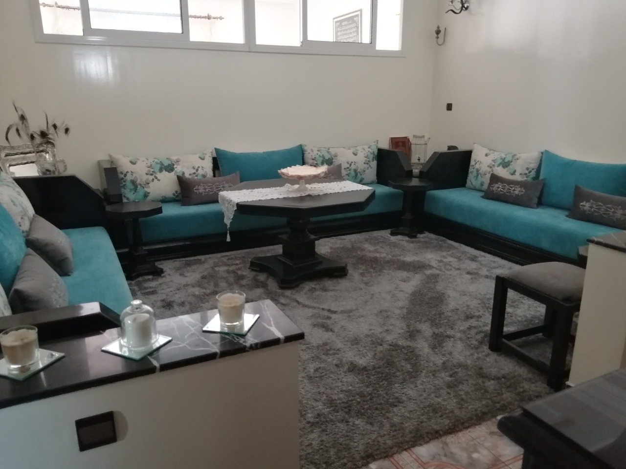 Nbre de pièces : 3 chambres , 2 Salons , une grande cuisine , deux balcons , 1 salle de bain , 2 toilettes.