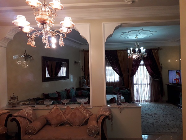 Au quartier aine Hayani, au voisinage de l’école Annour, on met en vente un très bel appartement de 136m² situé au 4ième et dernier étage dans un immeuble de R+4, sans ascenseur avec seulement 2 appartements par étage, composé de 2 salons, hall d’entrée, 3 chambres, grande cuisine et 1 salle de bain. Appartement sans vis-à-vis, bien ensoleillé, lumineux, et dispose d’une vue dégagée. Prix de vente : 8500dh/m², prix total 1156.000MAD environ 105.000 euros.