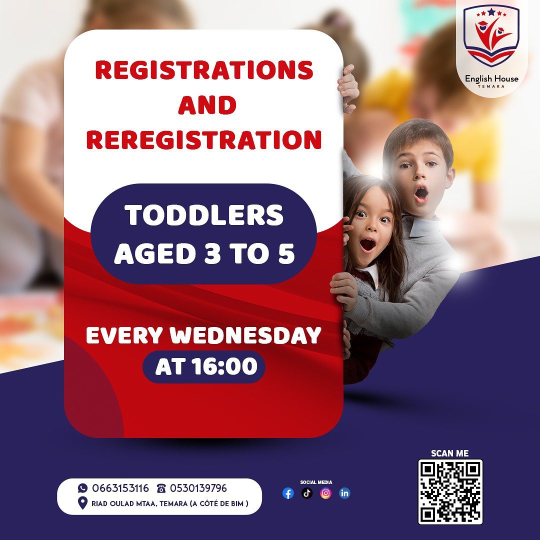 هل لديك طفل في العمر بين 3 و 5 سنوات؟ 🧒👧 هل تبحث عن فرصة لتطوير قدراته الذهنية والاجتماعية؟🧠🤝 إذاً، لا داعي للمزيد من البحث، لأننا نقدم لك فرصة مميزة لتسجيل طفلك في برنامجنا الرائع للأطفال الرضع في كل أربعاء الساعة 4 مساءً. 🎉