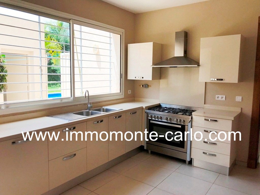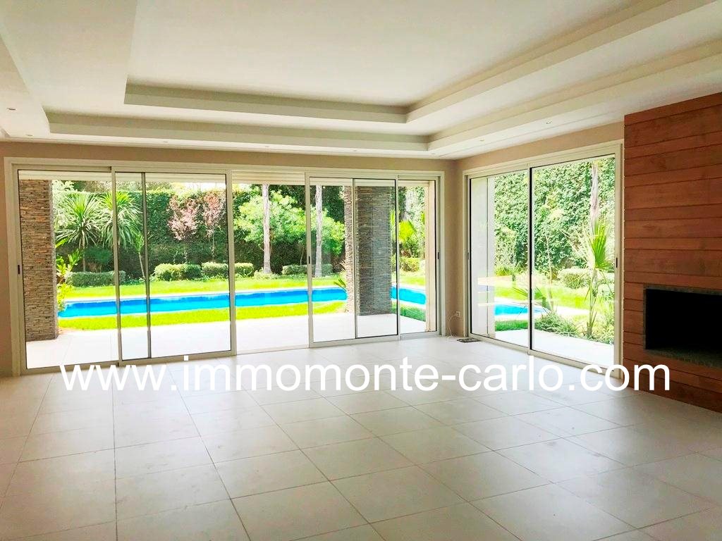 A louer villa neuve moderne à Rabat, villa très agencée avec piscine, chauffage central, climatisation, cheminée, beau jardin, garage automatique, vidéophone, Bénéficiant de prestations haut de gamme, finitions et matériaux de luxe, située sur une rue tranquille en plein cœur d’un quartier branché et résidentiel, villa composée :Belle réception donnant une grande terrasse