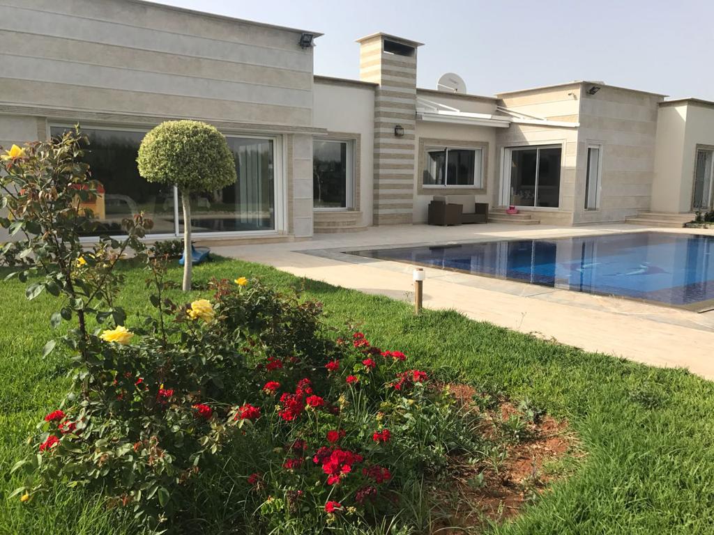 Une belle villa meublé en vente, bien situé dans un environnement calme, verdoyant et ensoleillé.Cette magnifique villa édifiée sur un terrain de 6000 m² et 300 m² habital construit sur un seul niveau, elle comprend un vaste salon et une belle salle à manger donnant sur le jardin, une cuisine entièrement équipée avec un coin repas et une grande piscine..