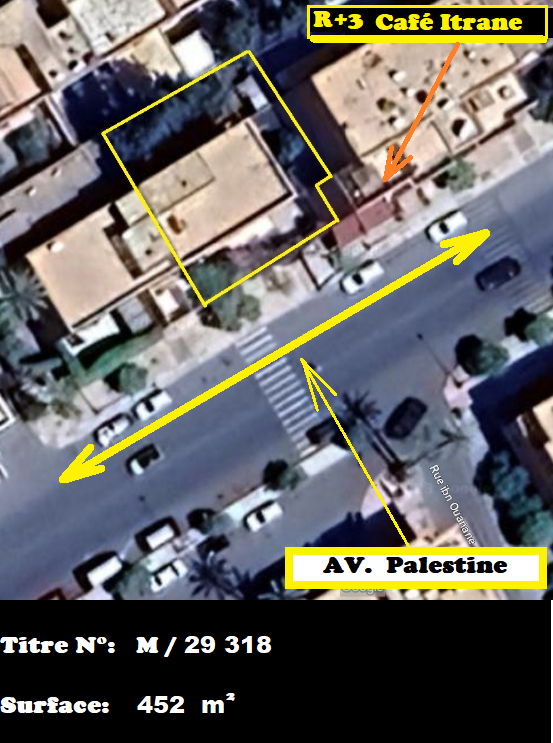 Terrain à 1 façade titré zone immeuble R+3 très bien placé à Guéliz (Av. Palestine). Maps :