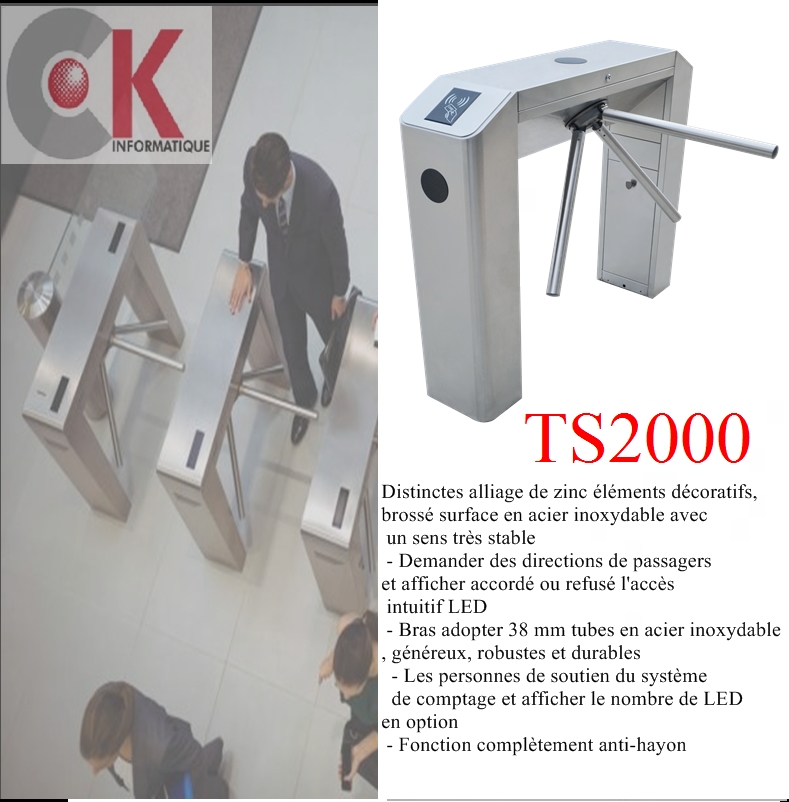 Le TS2000 est une série de tourniquets tripodes à une voie conçue pour un fonctionnement fluide et silencieux et qui consomme très peu d’énergie. Il est fabriqué en acier inoxydable, ce qui rend le TS2000 très durable.Le TS2000 est également étonnamment compact et conçu pour fonctionner dans de petits espaces de travail.