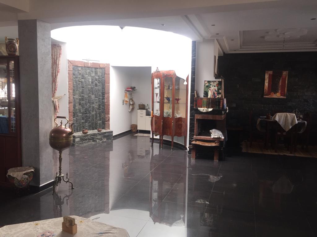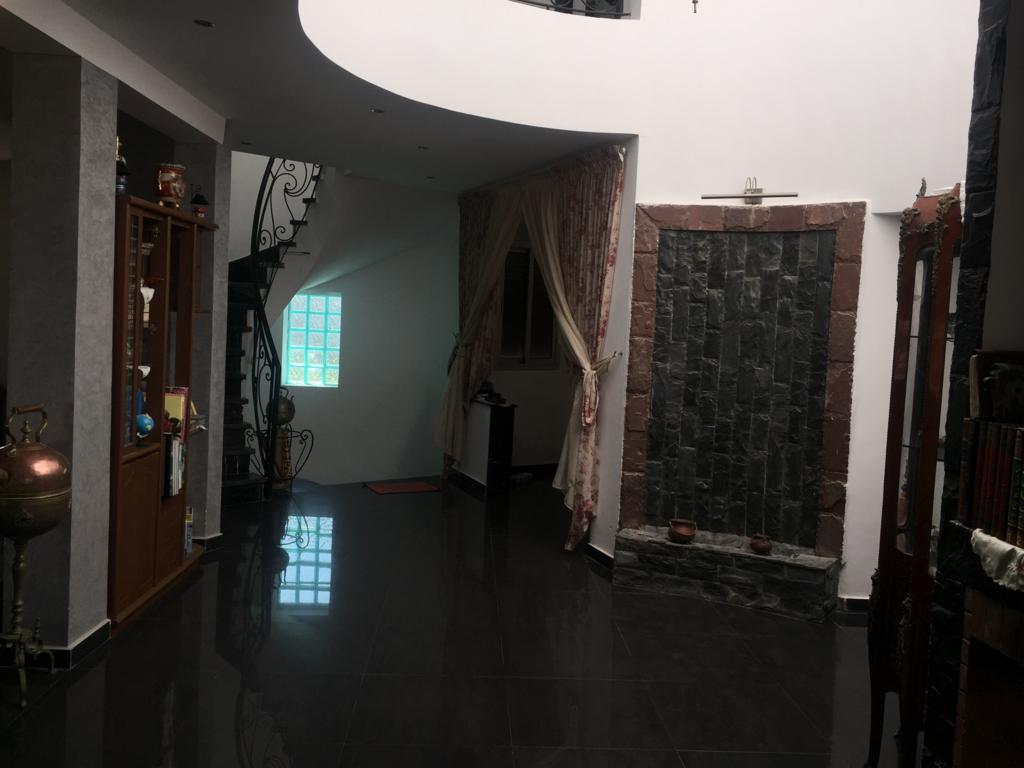 A vendre à sidi bouzid / el jasira villa unifamiliale de 400 m habitable construite sur un terrain de 215 m sur 3 niveaux : rez de jardin + entresol + l'étage + terasse. 2 façades opposées orientées Nord, Nord-Est/Sud, Sud-Ouest. L'étage se compose de 5 pièces dont une incorporée dans la suite parentale avec hamam Baldi. La distribution des pièces s'organise autour d'un patio circulaire qui se termine au sommet par un skydôme. Très bonne finition intérieure, très lumineux et ensoleillée. Cartier calme et sécurisée.