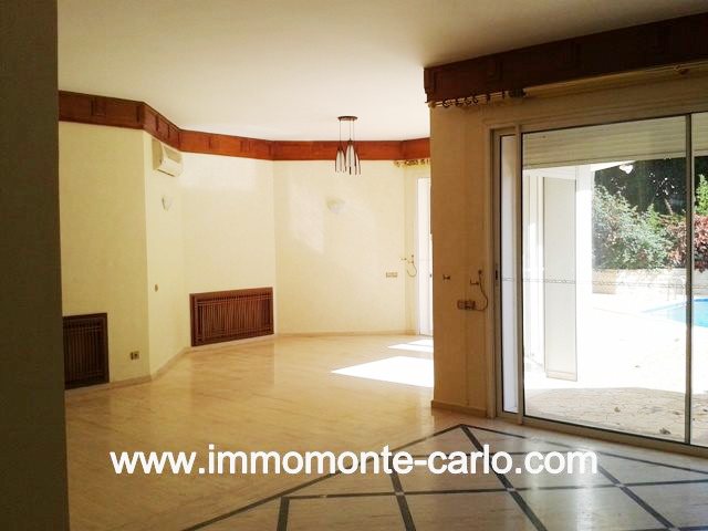 Location à Rabat villa moderne refaite à neuve, villa ensoleillée et calme avec piscine dotée d’un jardin, chauffage et climatisation centralisée, isolation thermique, énergie solaire, garage avec portail automatique, vidéophone, composée d’une très jolie réception ouverte donnant sur piscine, cheminée, salle d’eau pour la réception, salle à manger et une cuisine, d’une chambre principale avec salle de bain avec jacuzzi et dressing terrasse, 3chambres avec des placards, 2 salles de bain, grande salle, chambre du personnel avec salle de bain, buanderie, hammam et pièce de rangement, Pour plus d’informations ou visite n’hésitez pas de contacter notre agence immobilière Immo Monte-Carlo au N° de tél: +212661464037/ +212661212547ou Tél/Fax: +212537755043 ou par E-mail : immomontecarlo@gmail.com ou visitez notre site www.immomonte-carlo.com ou rendez-vous à rue Dayet Aoua, Imm 2, Apt 3, Agdal RABAT MAROC.